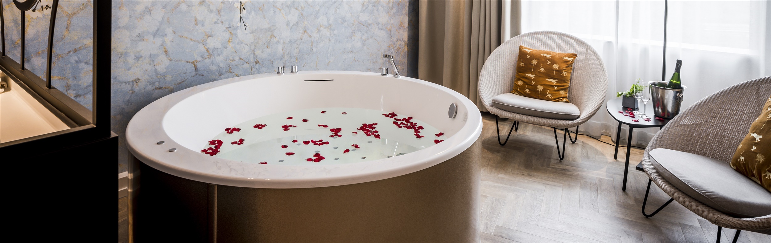 Im Whirlpool findet ein langer Arbeits- oder Stadtbesichtigungstag seinen perfekten Abschluss. Unsere Hotels bieten einige große Zimmer und Suiten mit eigenem Whirlpool an. Von einem Zwei-Personen-Whirlpool in Herzform bis zum freistehenden Whirlpool mitten im Zimmer ist hier alles möglich. Steigen Sie ins warme Wasser und genießen Sie völlige Entspannung.